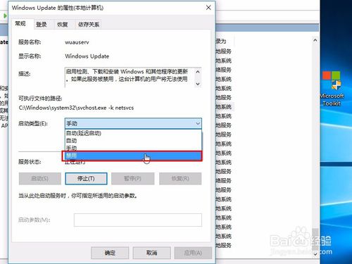 3.打开后,选择“禁用”然后应用确定,即可生效。