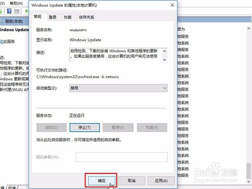 3. 选择“停止”按钮,然后把“手动”改成“禁用”,应用、确定保存,最后重启电脑。