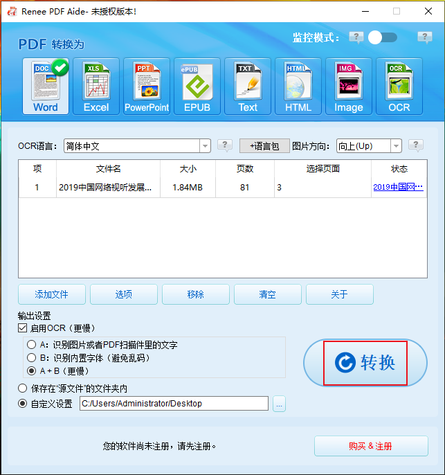 在都叫兽™PDF转换软件中,启用OCR技术包含两种功能。即