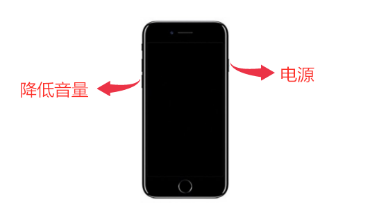 设备关闭后,按住“ 电源 ”按钮,直到看到 Apple 徽标。当您看到徽标时,松开“ 电源 ”按钮并立即按住“ 降低音量 ”按钮几秒钟。