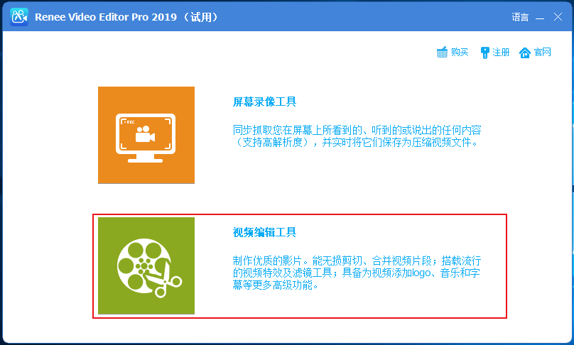 步骤1:下载安装后运行都叫兽™视频编辑软件,点击【视频编辑工具】按钮进入视频编辑界面。