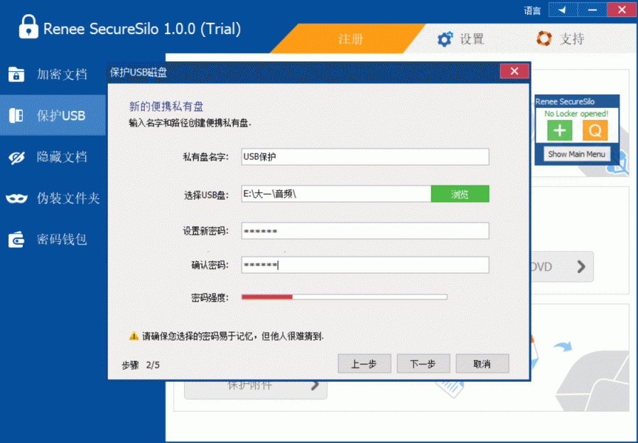 3、点击保护USB,然后在USB中创建一个便携私有盘。