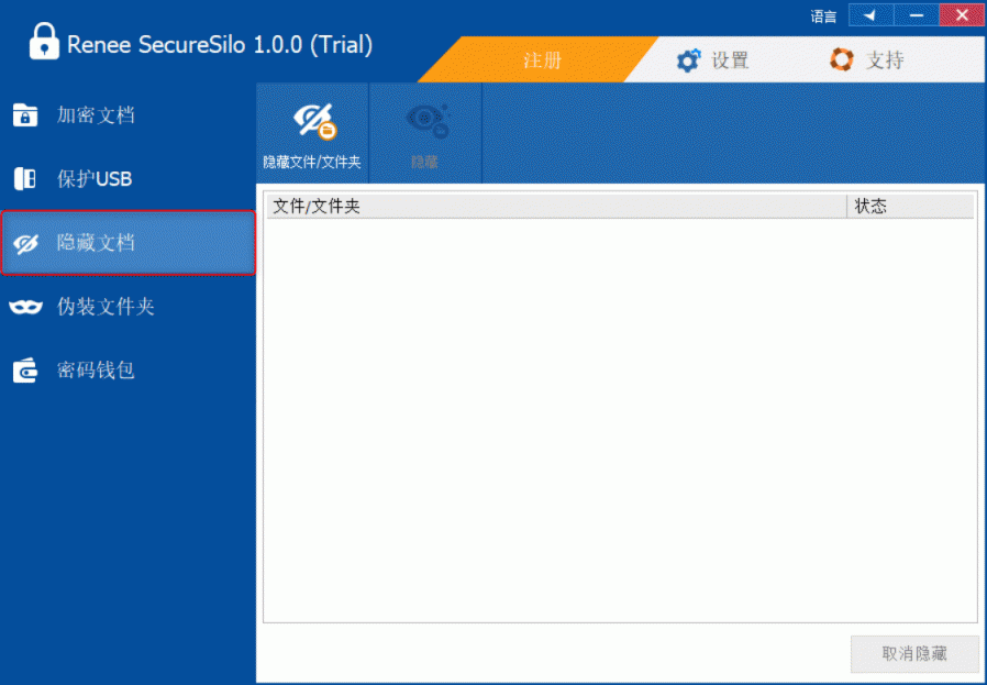 4、如果我们需要取消隐藏,我们只能进入软件,输入密码进行取消隐藏,通过常规途径(Windows自带的显示隐藏文件)并不可以查看隐藏的文件。