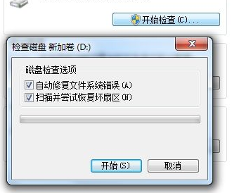 步骤4:如果你的系统是Windows 7 或者Windows 8,请勾选【自动修复文件系统错误】和【扫描并尝试恢复坏扇区】,而Windows 10里面是默认自动修复所有错误的。之后耐心等待扫描和修复完成即可。