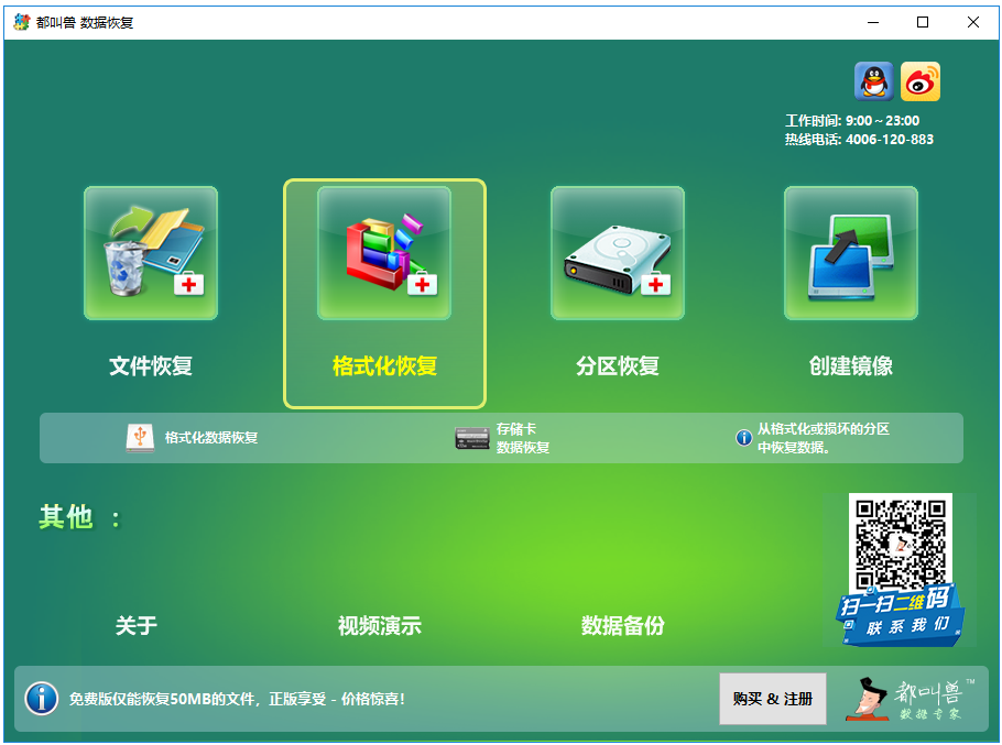 都叫兽™数据恢复软件是一款专门用于恢复系统数据文件的软件,当您不慎误删了重要文件,清空了回收站,或者是格式化了磁盘/存储器,都可以借助该工具将丢失的数据找回。该软件涵盖了四大功能模块,即包含文件恢复、格式化恢复、分区恢复和创建镜像,可以帮您全方位地解决所有数据丢失的问题。此外,该软件还采用了强大的指纹技术及文件系统重建技术,可以绕过SD卡中损坏的块(Block),重建SD卡文件系统,帮助您最大限度找回SD卡中完好的数据文件,非常的方便。