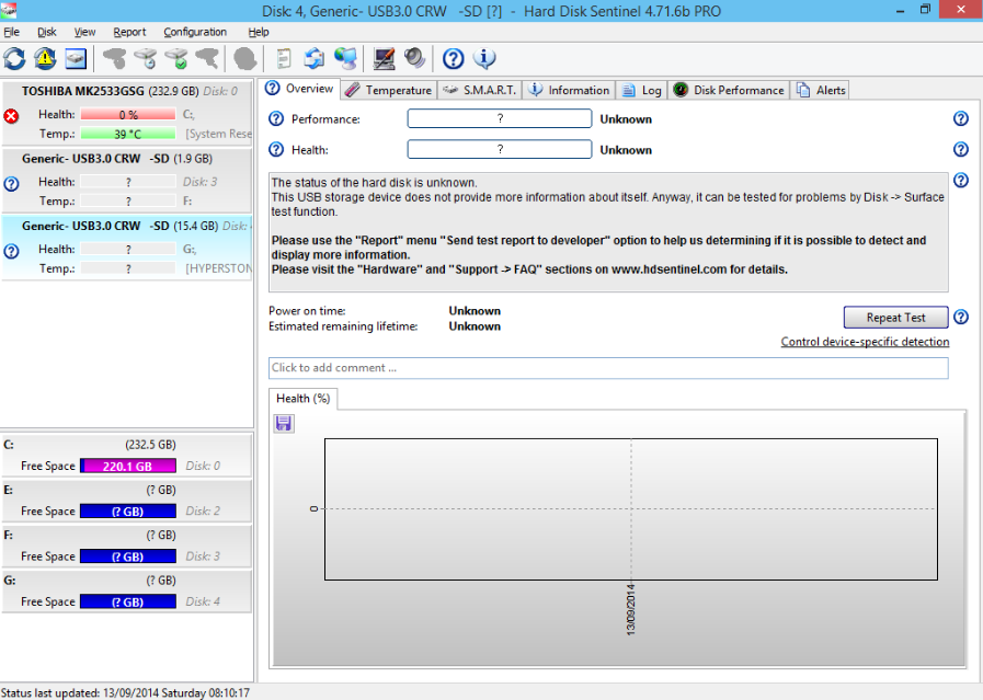 ① 通过适当的存储卡读卡器插入设备后打开软件,读卡器将默认显示“未知”状态: