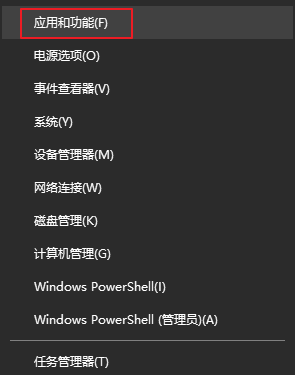 步骤1:右键点击【开始】,选择【应用和功能】。