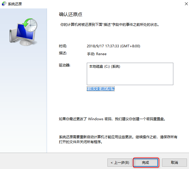 4.即使您还原系统,也无法还原已删除的个人数据(文件和文件夹)。